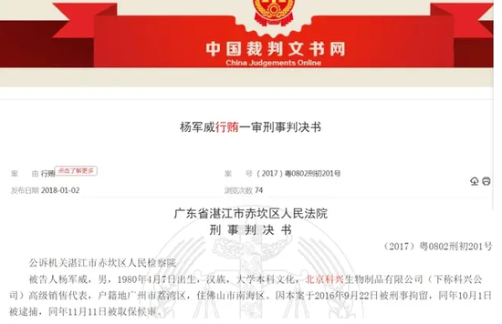 但后来我们通过尹红章受贿案判决书知道,从2002年起,科兴就向有关部门行贿——