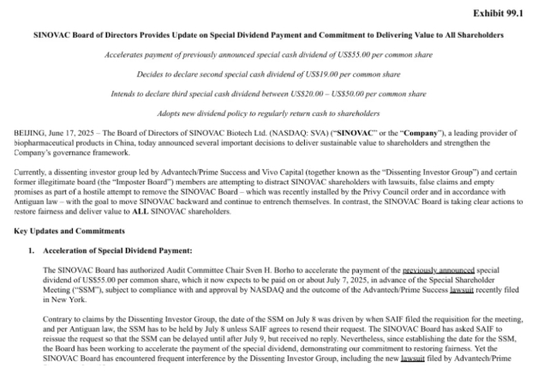 最近比较有意思的新闻是科兴清仓式分红——