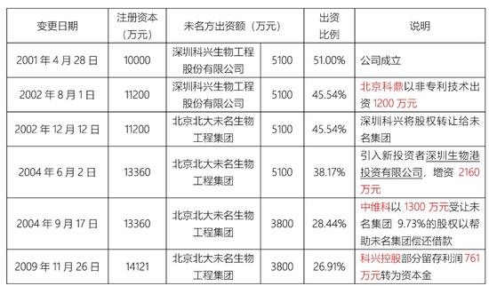2003年9月26日,北京科兴时任董事长潘爱华、副董事长王宪平、董事总经理尹卫东代表三方股东签署了一份备忘录,约定了北京科兴以买壳的方式在OTCBB挂牌的实施步骤,以及上市公司继续维护北大未名的绝对控股地位、保证北大未名在北京科兴未来的业务发展中起主导作用,同时约定北京科兴的董事会由五人组成,其中由北大未名委派二人,由上市公司委派二人,由上市公司委派经北大未名指定的一人。潘爱华称之为“桌下交易”。
