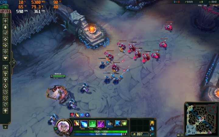 在《英雄联盟》中,锐龙9 9955HX跑出590帧,英特尔275HX 则是 512 帧,AMD锐龙平台平均帧领先幅度约15%,1%Low帧领先25%。对于一款追求极致响应和低延迟的网游来说,这样的差距形成了实际操作手感的加分。尤其在高刷电竞屏下,这种极为跟手的感觉会让游戏优势变得更加明显。