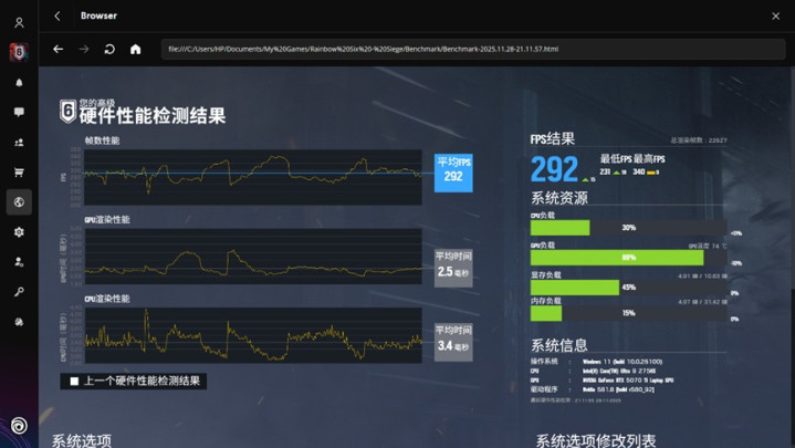 可以看出,游戏进入CPU与GPU并行渲染的阶段,Zen 5的指令吞吐与调度效率就能减少显卡的等待时间,让GPU始终以更接近满载的状态运行,帧率自然更高也更稳定。而275HX也依然是一颗性能强悍的旗舰级处理器,差异在于,在同功耗与同GPU组合下,AMD平台的输出效率更高。追求流畅操作、稳定帧数,以及更低输入延迟的电竞玩家可以考虑选择锐龙平台游戏本。